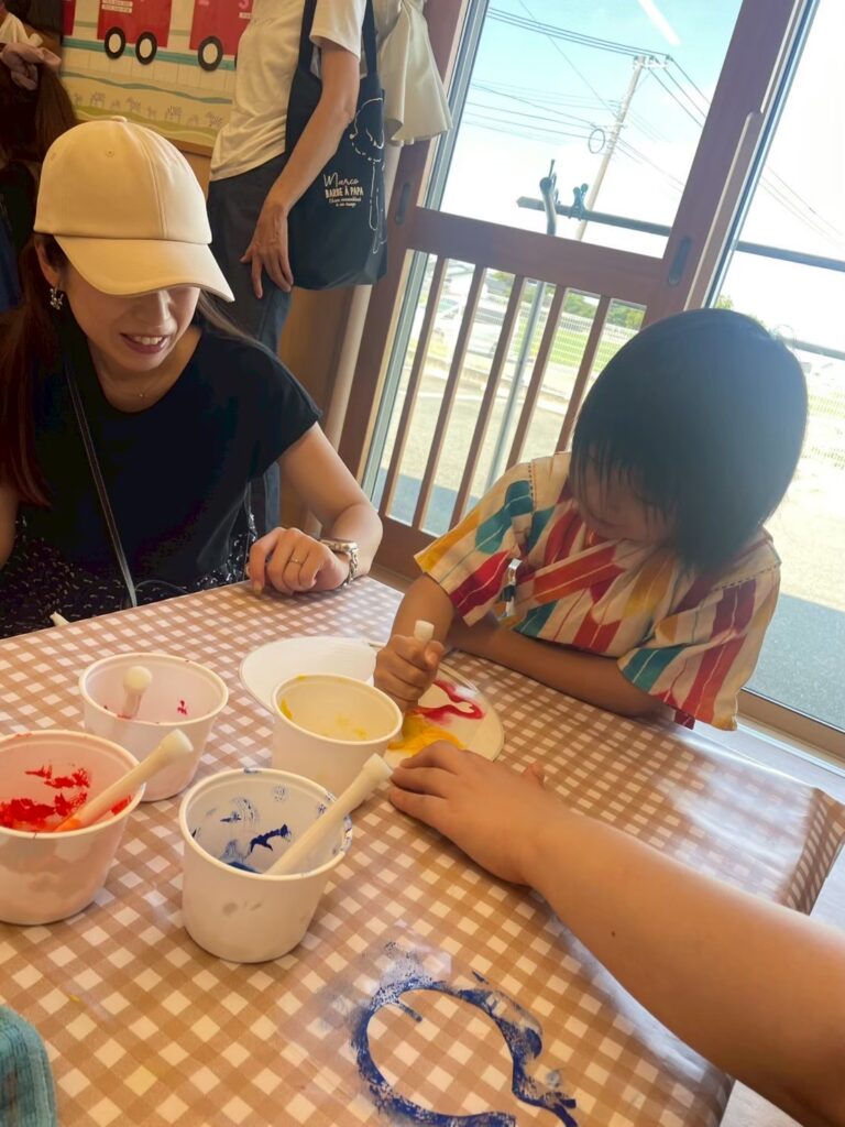 大人気のうちわ作りでは、ステンシルを用いて世界にひとつだけの「きんぎょがにげた」🐠のうちわを作りましたよ💛